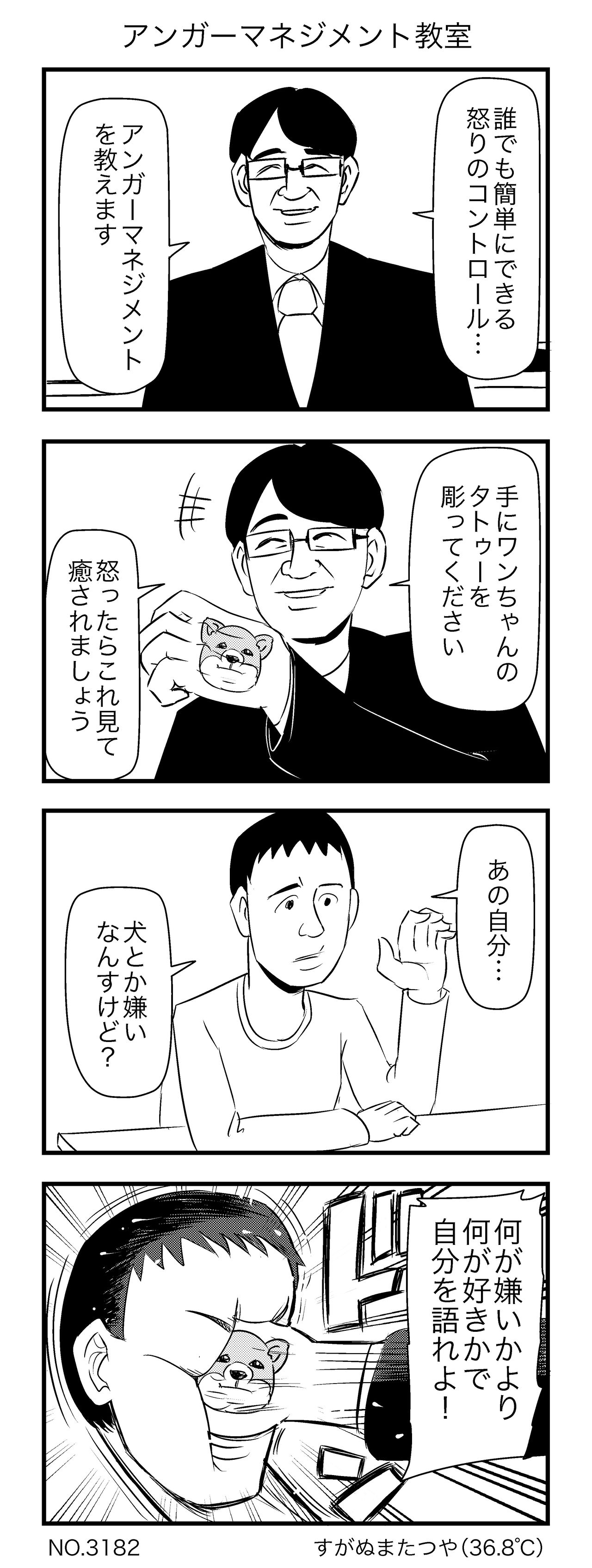 2024年02月27日 アンガーマネジメント教室 「単発」カテゴリの最新記事 < 前の記事次の記事 > コメント コメント一覧 (10) 1. 名無 2024年02月27日 20:40 アンガーマネジメントって簡単! 0 すがぬまたつや がしました 2. . 2024年02月27日 20:48 怒りがわいたら6秒以内に怒りの対象を消せば怒る必要がなくなります。 0 すがぬまたつや がしました 3. たつやファン 2024年02月27日 21:46 ワンピースの名言じゃん(違) 0 すがぬまたつや がしました 4. @yu 2024年02月27日 21:51 「俺がワンちゃんのタトゥー彫ってなかったら心臓打ち抜いてる所だった…危ない危ない…」 0 すがぬまたつや がしました 5. 犬派、ネコ派、ファリサイ派 2024年02月27日 22:23 ワンチャン(ワンチャンス)ネコのタトゥーでも良くね 0 すがぬまたつや がしました 6. 2024年02月28日 05:53 2コマ目からイカレてて好きすぎる 0 すがぬまたつや がしました 7. お犬様 2024年02月28日 11:21 この入墨、自分で見る時に頭が下で顎が上になりますよね?この向きで癒やされるんですかね? 0 すがぬまたつや がしました 8. 2024年02月28日 16:31 自分で見るのになぜ犬の顔が逆なのか…もしかして殴る(相手に見せつける)前提では…!? 0 すがぬまたつや がしました 9. 犬 2024年02月28日 17:02 全然アンガーマネージメント出来てねーじゃねーかw 0 すがぬまたつや がしました 10. あ 2024年02月28日 21:45 ツギハギ漂流作家やん 0 すがぬまたつや がしました このブログにコメントするにはログインが必要です。 さんログアウト この記事には許可ユーザしかコメントができません。 コメントフォーム 名前 コメント 記事の評価 リセット リセット 顔 星 情報を記憶 コメントを投稿する